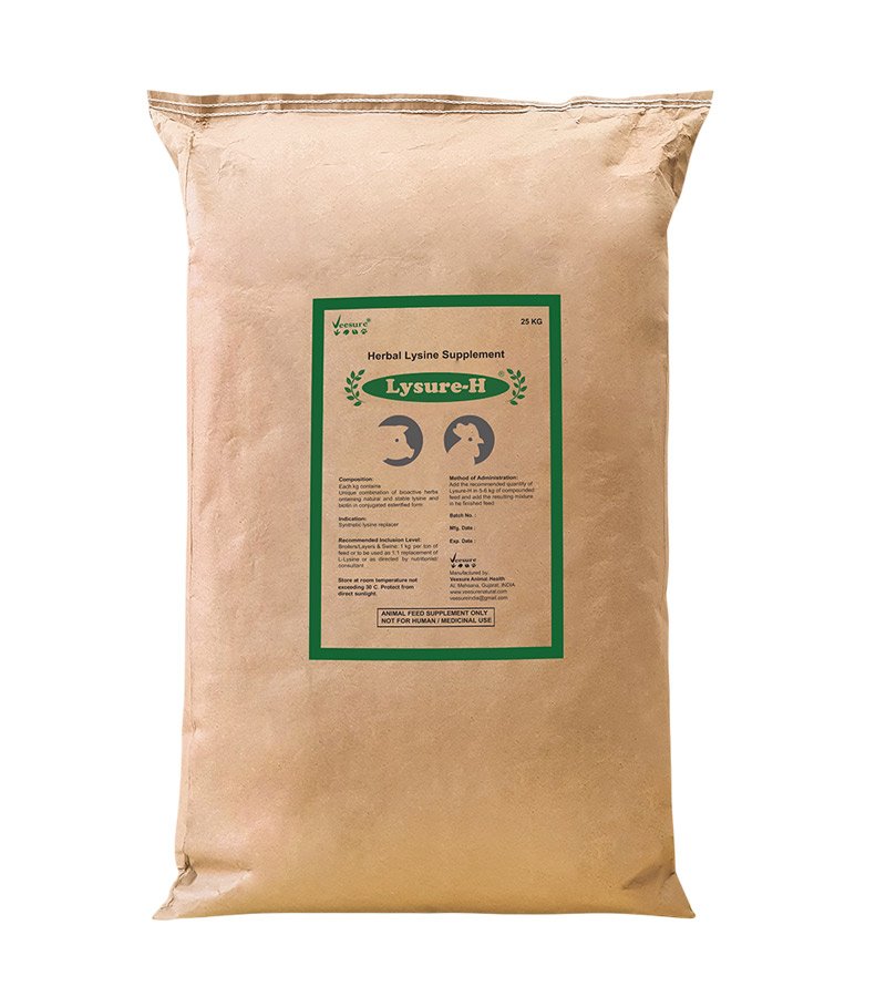 Add the recommended quantity of Herbosure-E in 5-6 kg of compounded feed and add the resulting mixture in the finished feedPresentation: