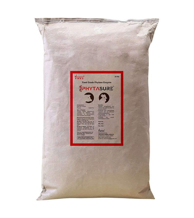 Each gm of PHYTASURE contains (Active Ingredients) Phytase 5,000 FTU/g